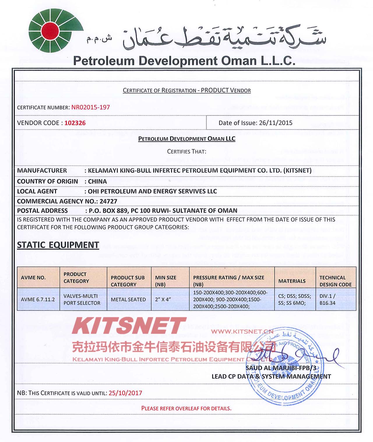 公司正式成為阿曼石油發(fā)展公司(PDO)的合格供應商